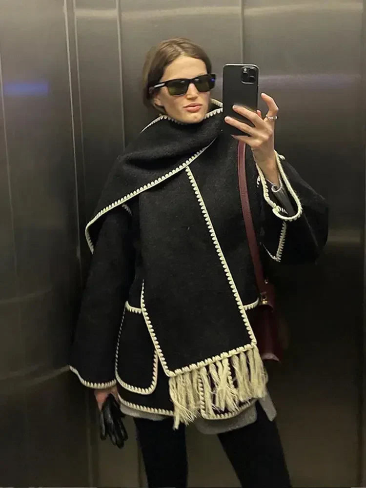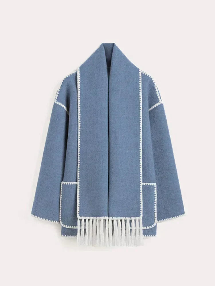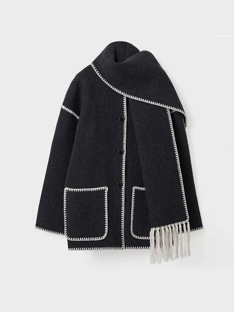 - Integrierter Schal : Der Schal fügt nicht nur ein stilvolles Detail hinzu, sondern bietet auch zusätzliche Wärme an kühleren Tagen.