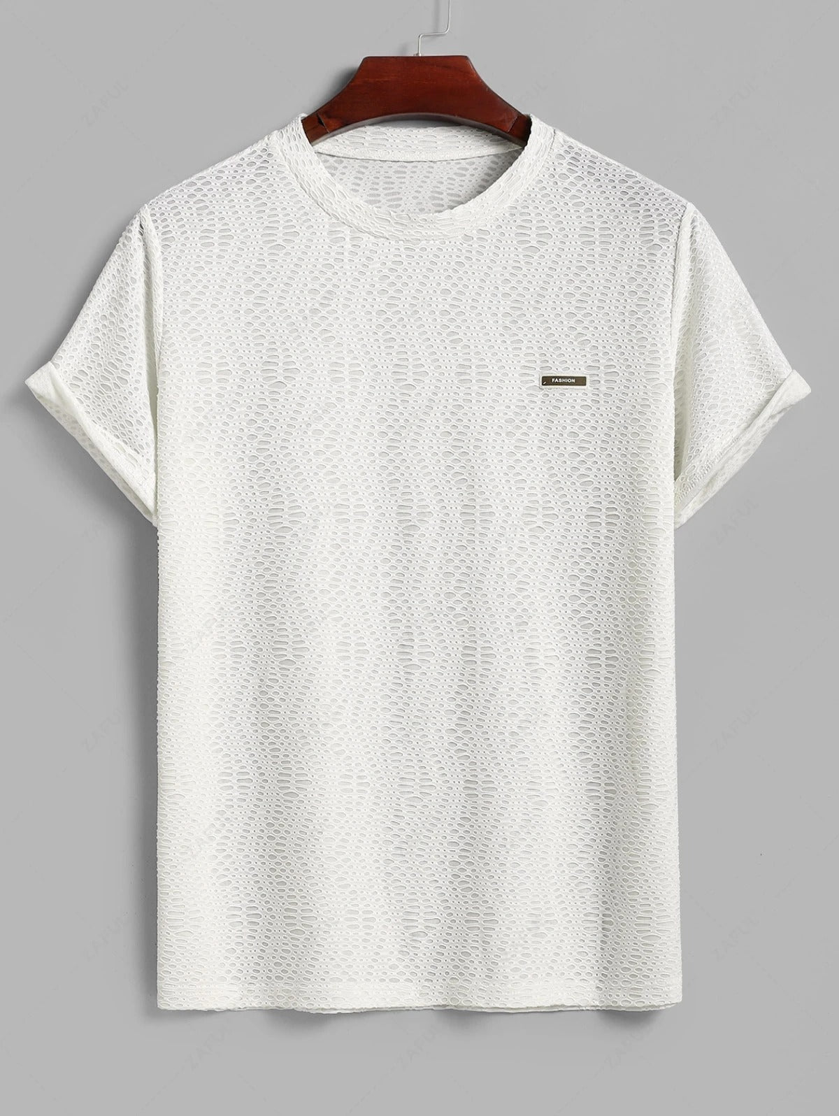 Design: Ösen-Jacquard-texturiertes T-Shirt mit Rundhalsausschnitt und Shorts mit Kordelzug