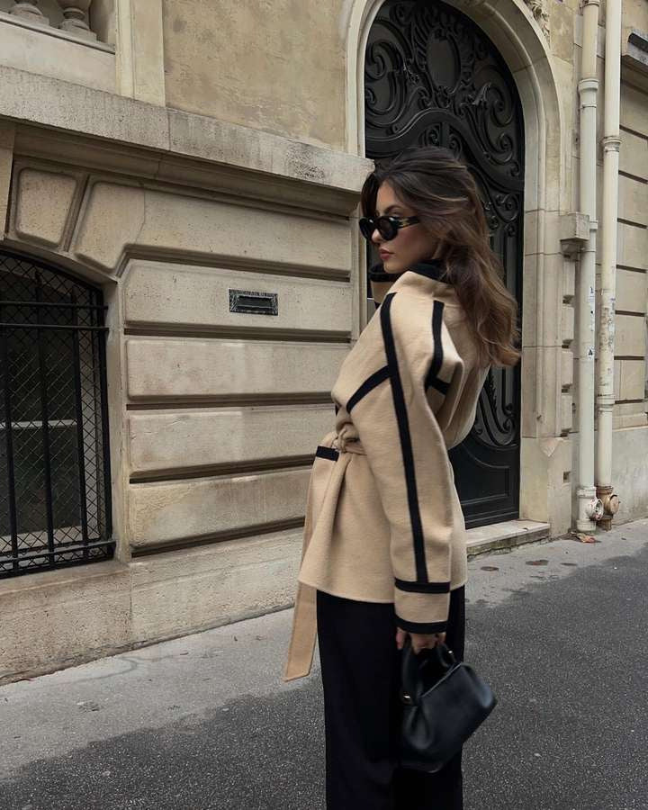 ✦ Edles Design: Der Mantel besticht durch seine klaren Linien und eleganten Details, die jedem Outfit einen Hauch von Raffinesse verleihen.