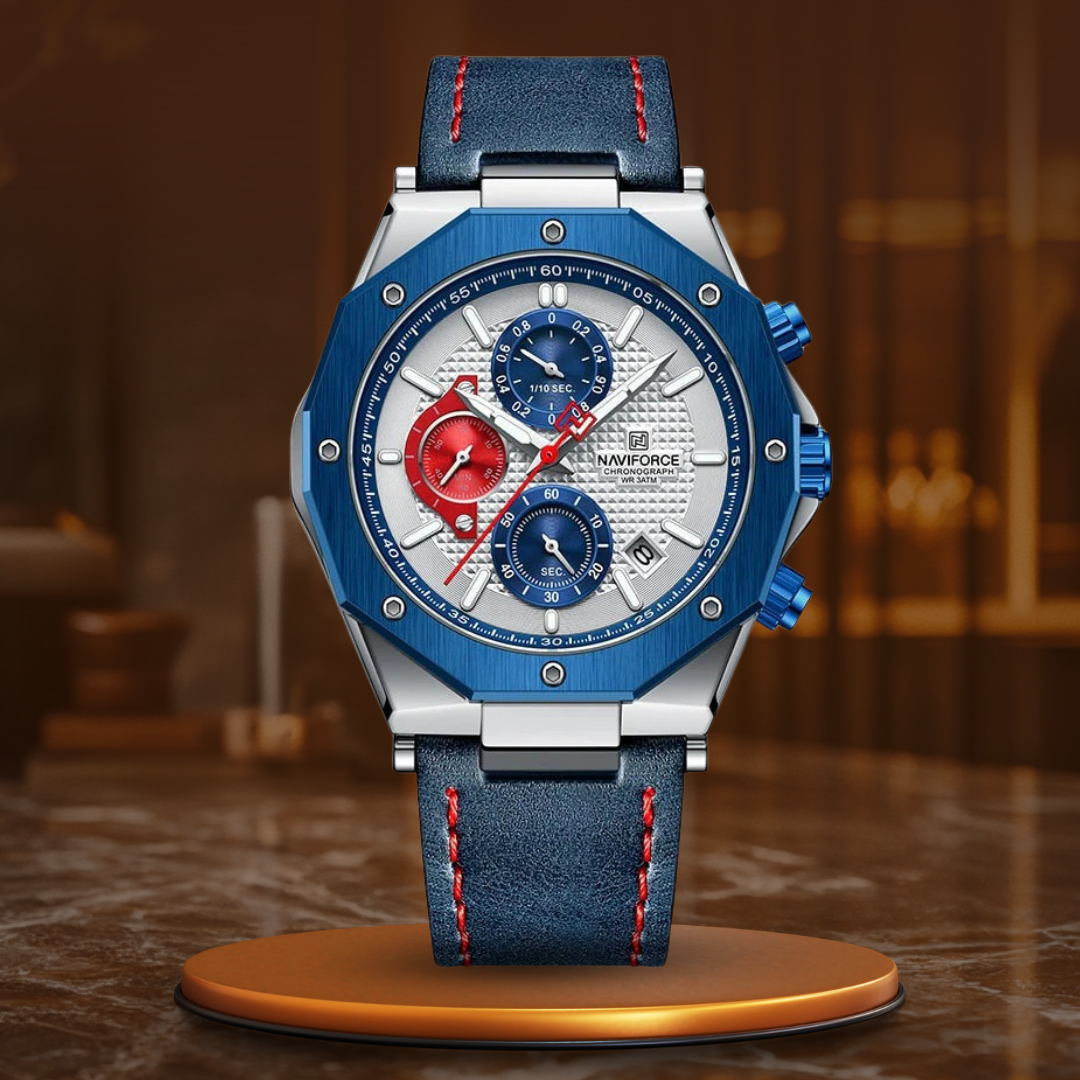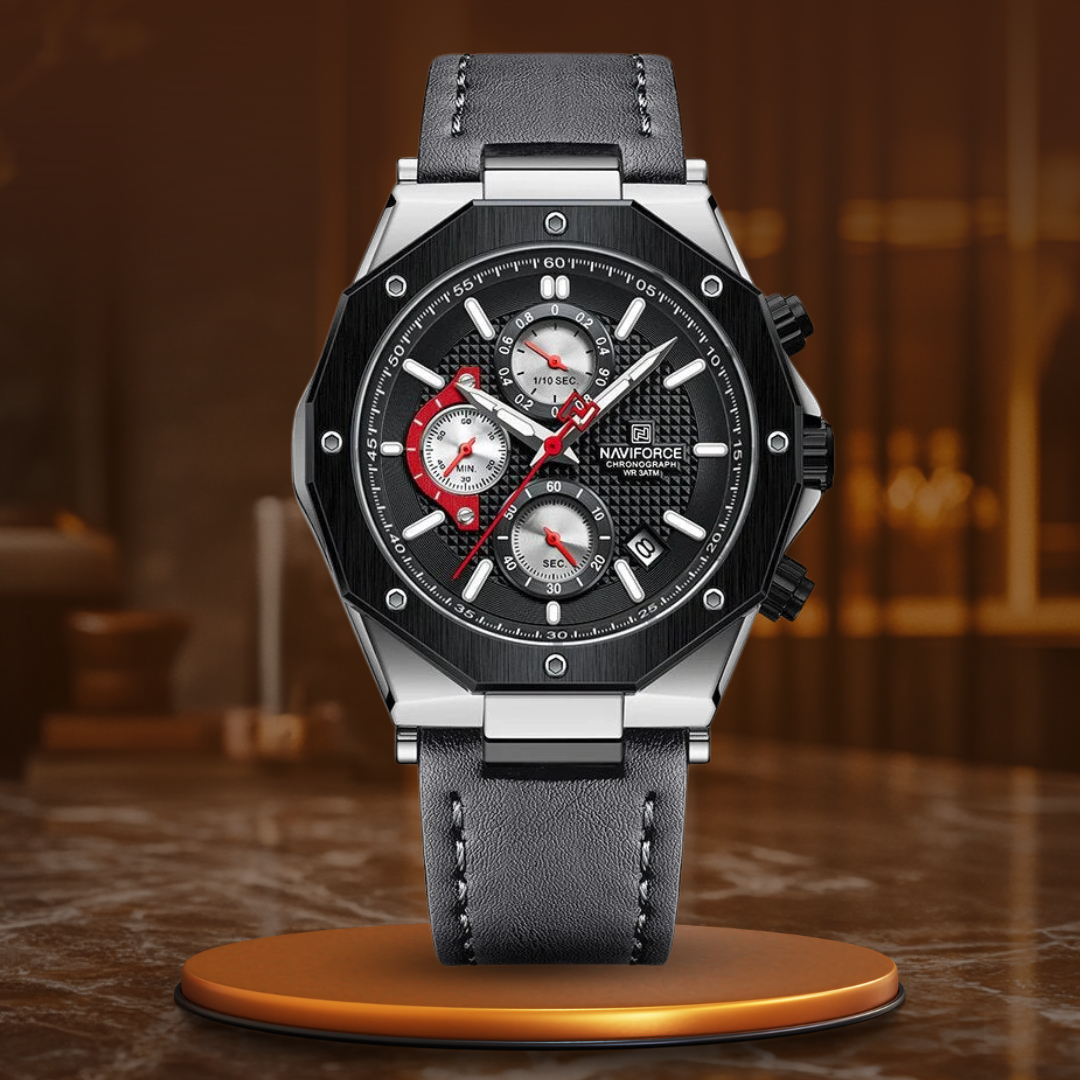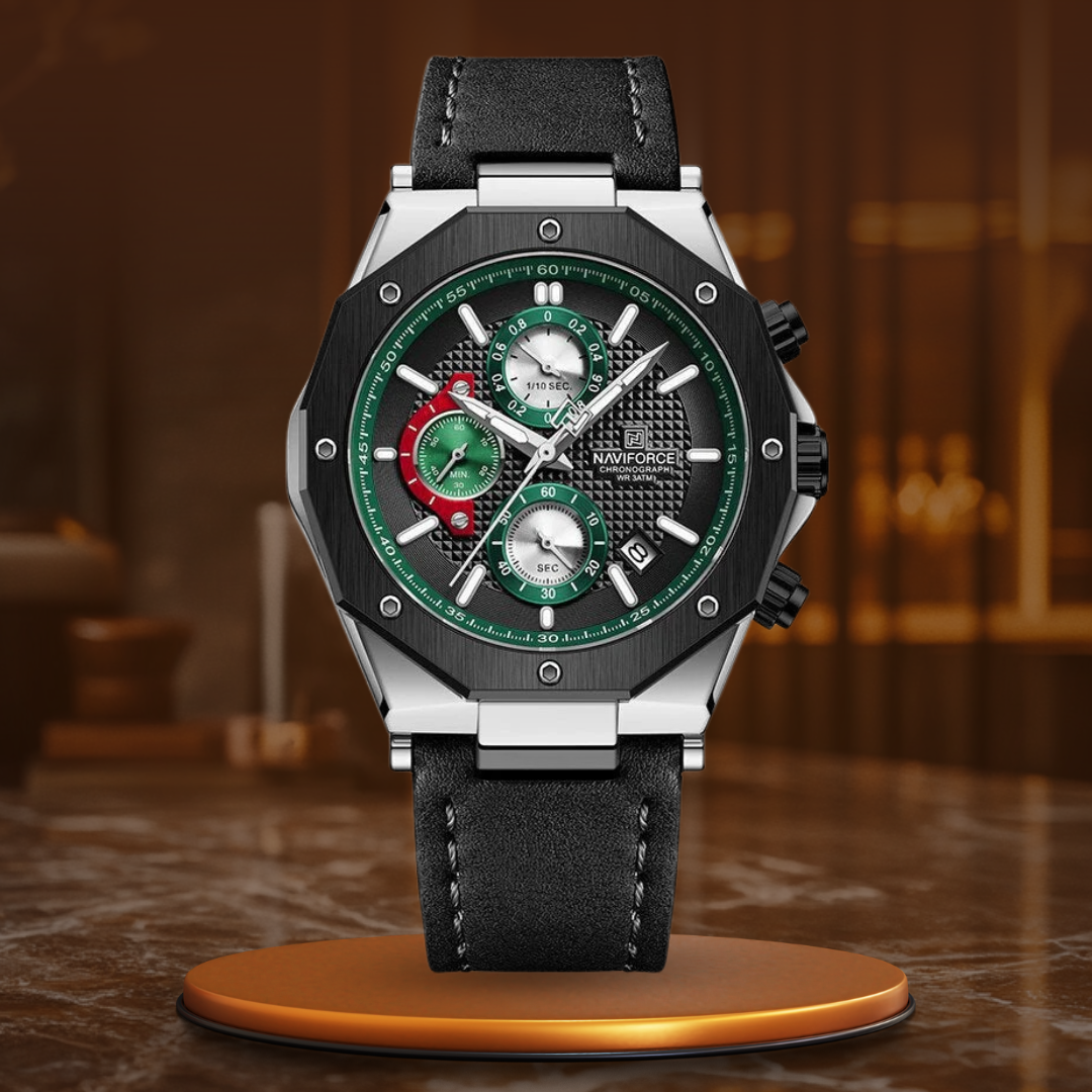 Diese luxuriöse Sport-Chronographenuhr kann mehr als nur die Zeit anzeigen – sie setzt ein Statement. Mit ihrem schlanken Design, der Datumsanzeige und der Stoppuhrfunktion ist sie perfekt für alle, die Präzision und Funktionalität schätzen. Das Lederarmband bietet den ganzen Tag über Komfort, während die wasserdichte Konstruktion Sie auf jedes Wetter und jeden Anlass vorbereitet. Machen Sie jeden Moment zu etwas Besonderem mit einer Uhr, die Ihre einzigartige Kombination aus Eleganz und Widerstandsfähigkeit widerspiegelt.