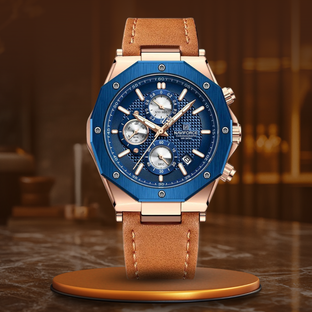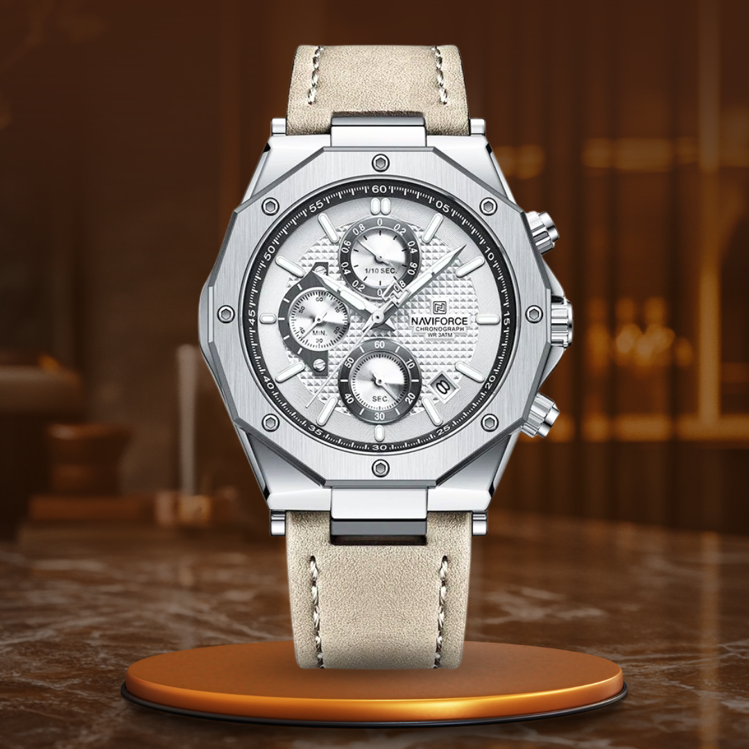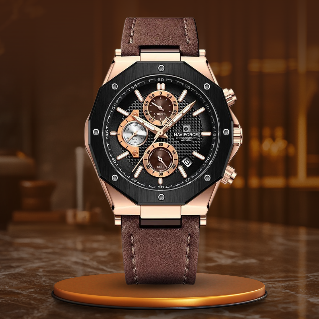 Diese luxuriöse Sport-Chronographenuhr kann mehr als nur die Zeit anzeigen – sie setzt ein Statement. Mit ihrem schlanken Design, der Datumsanzeige und der Stoppuhrfunktion ist sie perfekt für alle, die Präzision und Funktionalität schätzen. Das Lederarmband bietet den ganzen Tag über Komfort, während die wasserdichte Konstruktion Sie auf jedes Wetter und jeden Anlass vorbereitet. Machen Sie jeden Moment zu etwas Besonderem mit einer Uhr, die Ihre einzigartige Kombination aus Eleganz und Widerstandsfähigkeit widerspiegelt.