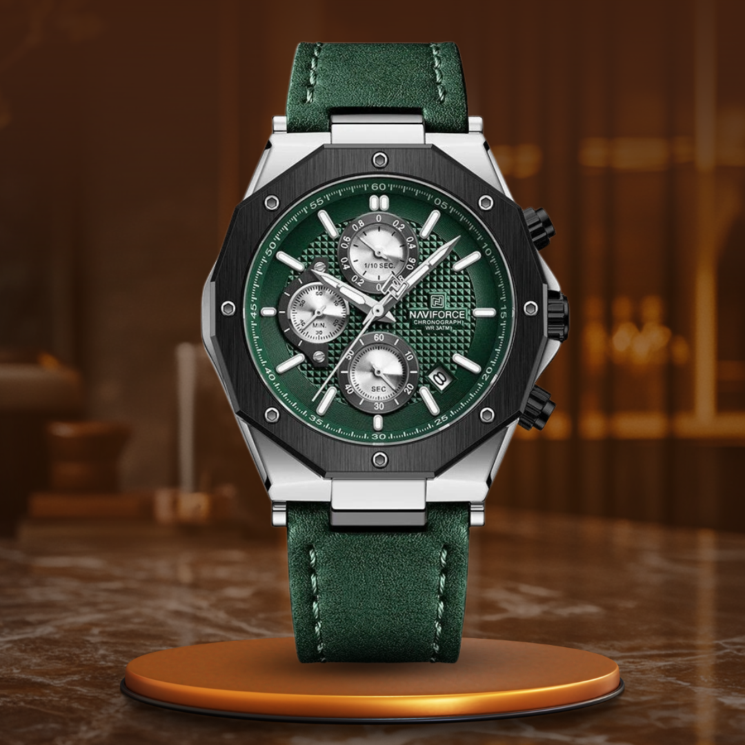 Modische Chronographenarmbanduhren aus Leder sind für Männer gedacht, die sowohl Leistung als auch Eleganz verlangen. Mit einem robusten Lederarmband und einem präzisen Quarzwerk ist diese Uhr ebenso zuverlässig wie stilvoll. Das militärische Design in Kombination mit der wasserdichten Funktionalität sorgt dafür, dass sie für jedes Abenteuer gerüstet ist. Ob Sie ins Büro oder in die Natur gehen, diese Uhr passt zu Ihrem Lebensstil und hält Sie mühelos auf Kurs.