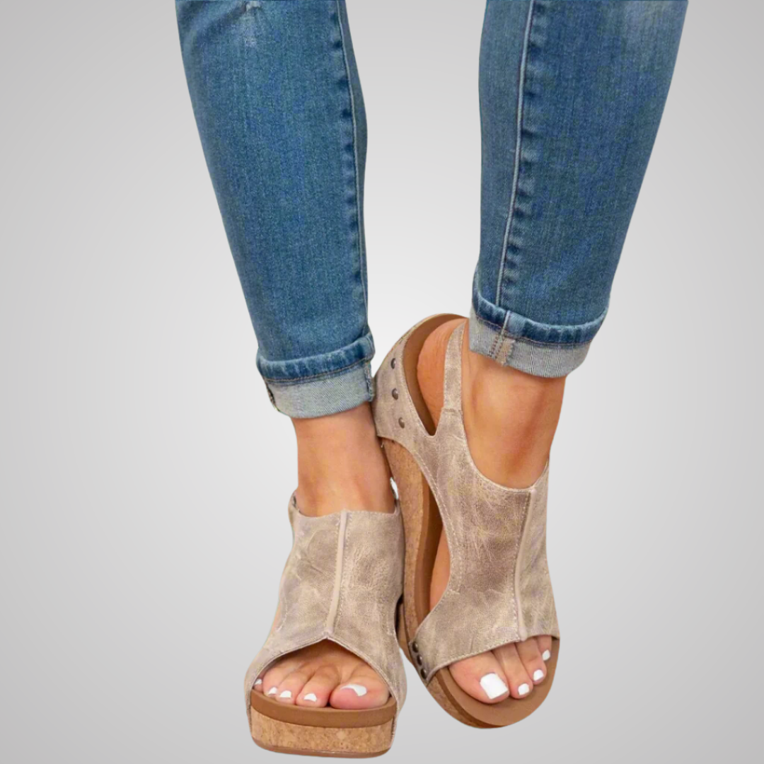 Komfort mit Höhe - Leichter, stabiler Keilabsatz aus Kork.