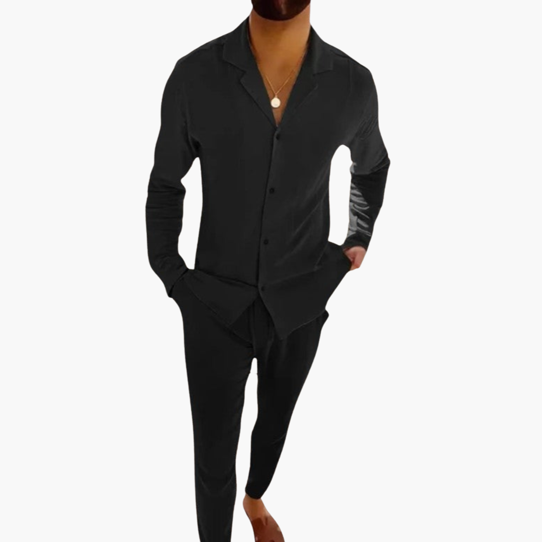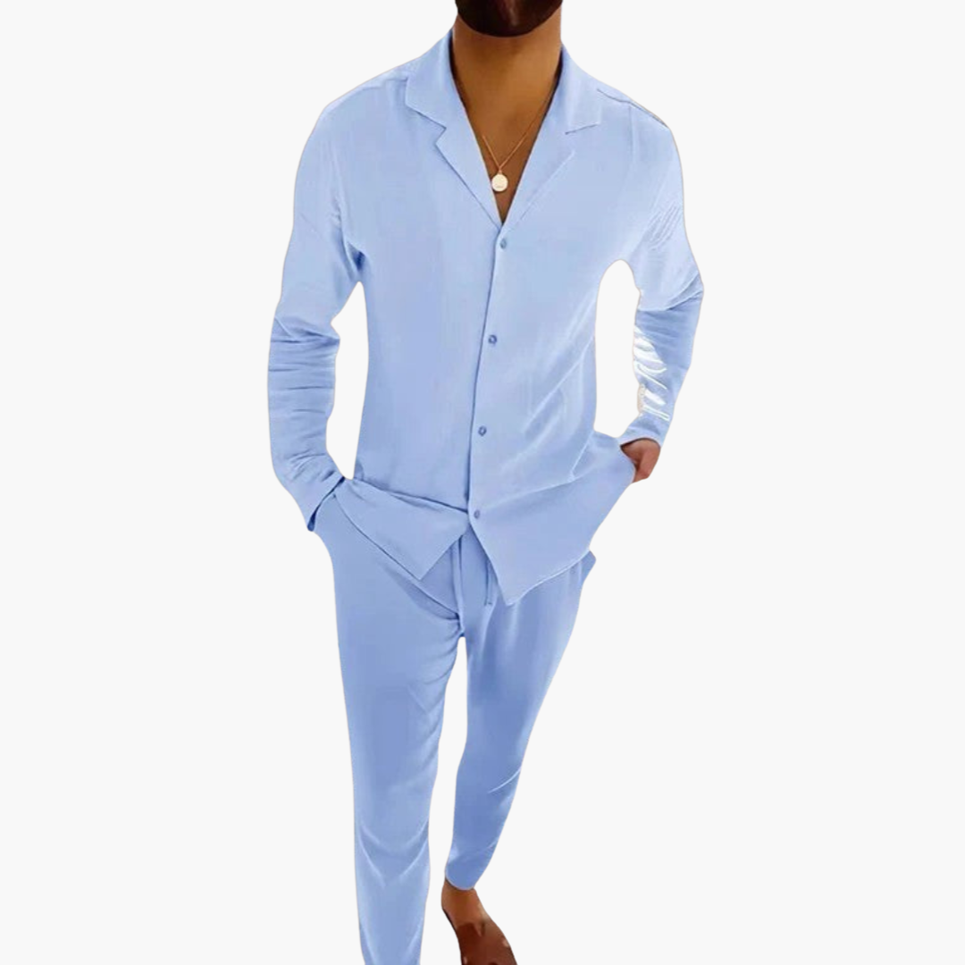 Das Kleophas – Klassisches Leinen-Set vereint stilvolles Design mit dem luftigen Komfort von hochwertigem Leinen. Ob beim Stadtbummel, im Büro oder bei sommerlichen Events – dieses Set überzeugt mit seiner schlichten Raffinesse und seiner angenehmen Tragbarkeit.