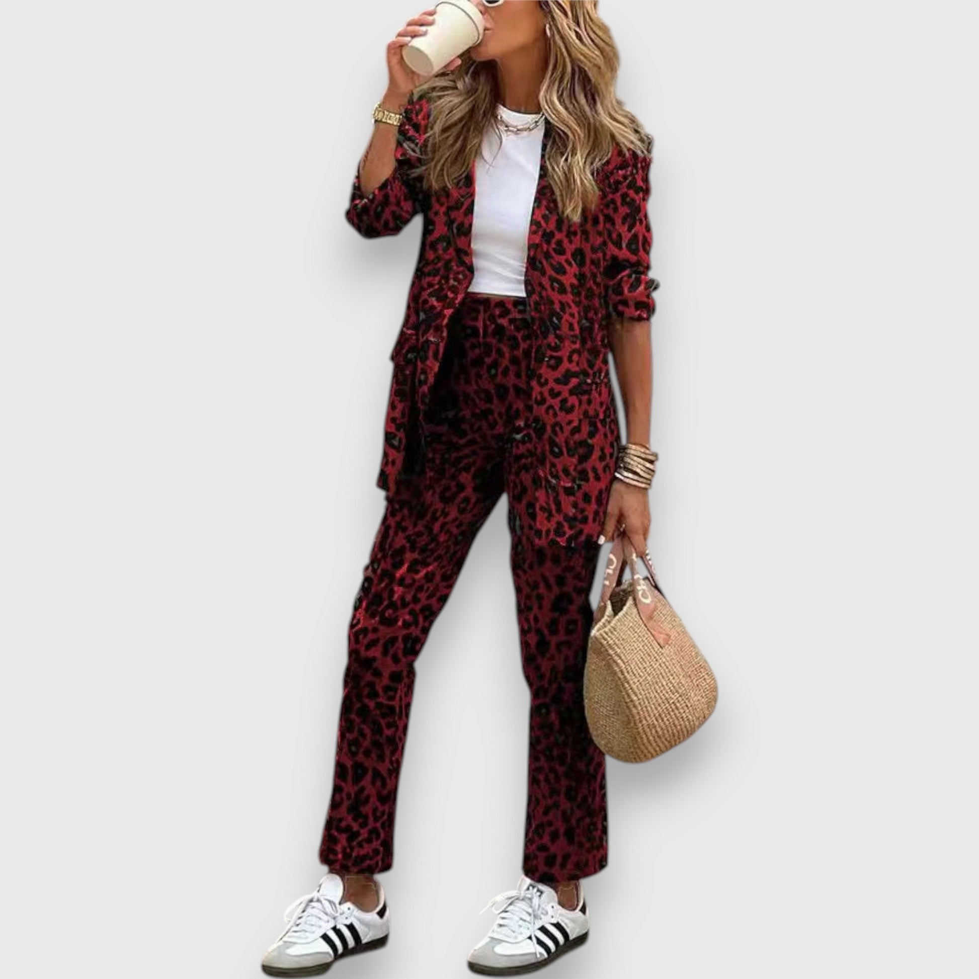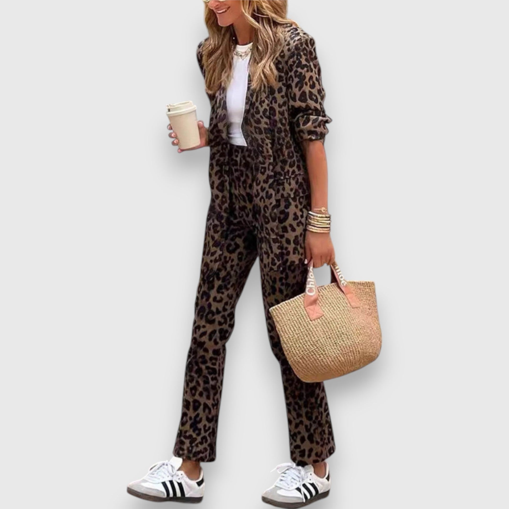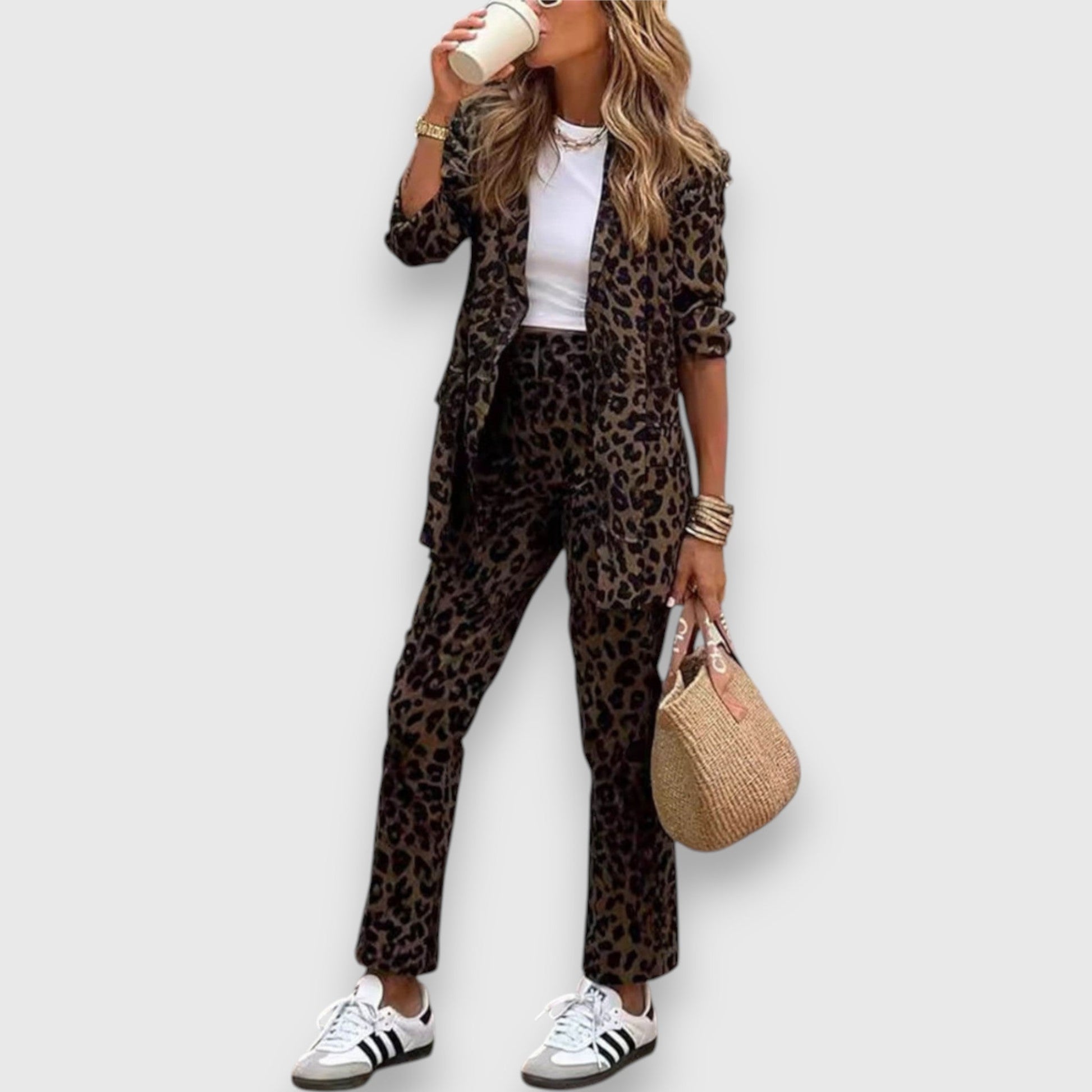 Das Liorina Set aus Blazer und Hose im Leopardenmuster bringt frische Raffinesse in jede Garderobe. Mit leichtem Stoff und einer eleganten, entspannten Passform setzt du mühelos ein stilvolles Statement – perfekt für besondere Anlässe oder modische Alltagslooks.