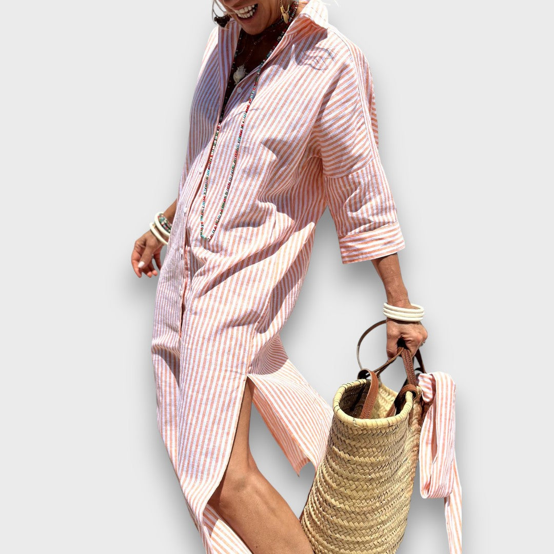 Luméra – Gestreiftes Hemdkleid mit Schlitz