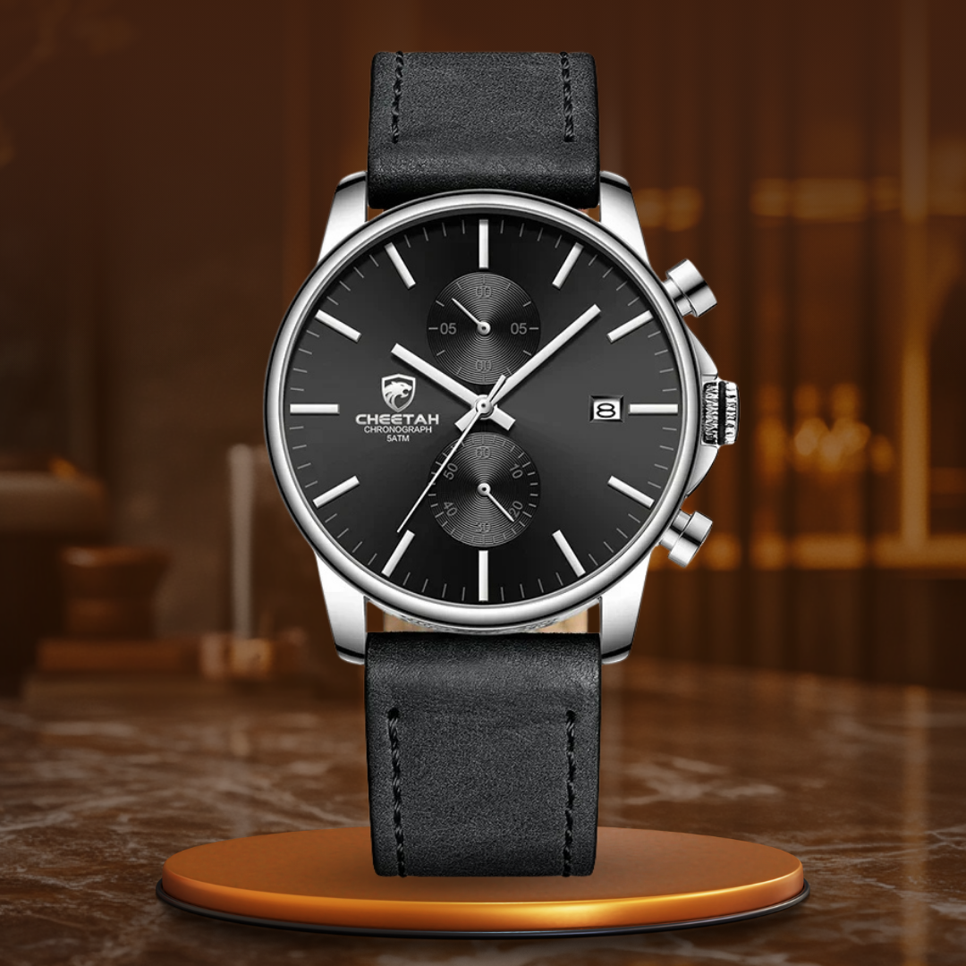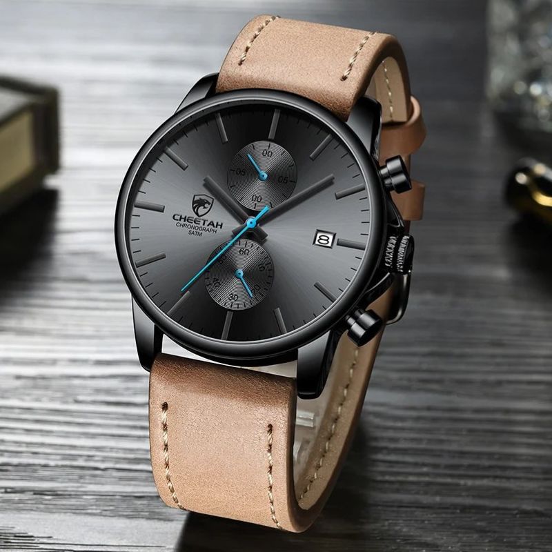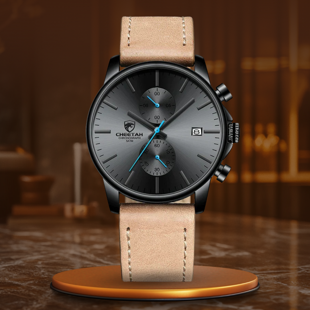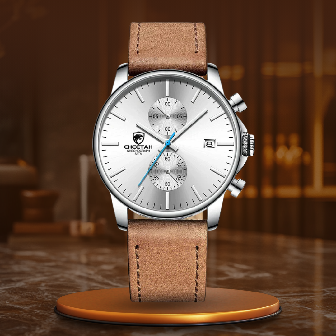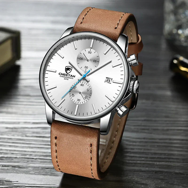 Diese luxuriöse Sportuhr für Herren vereint praktischen Nutzen mit erstklassiger Handwerkskunst und verfügt über eine präzise Chronographenfunktion, mit der Sie Ihr Training messen oder Ihren geschäftigen Tag verwalten können. Das robuste Lederarmband bietet sowohl Komfort als auch Klasse, während die Wasserdichtigkeit es ideal für jedes Abenteuer macht. Ob Sie im Büro Eindruck schinden oder mit Ihrem Wochenendoutfit ein Statement setzen möchten, diese Uhr ist die perfekte Balance aus Stil, Funktionalität und Luxus.