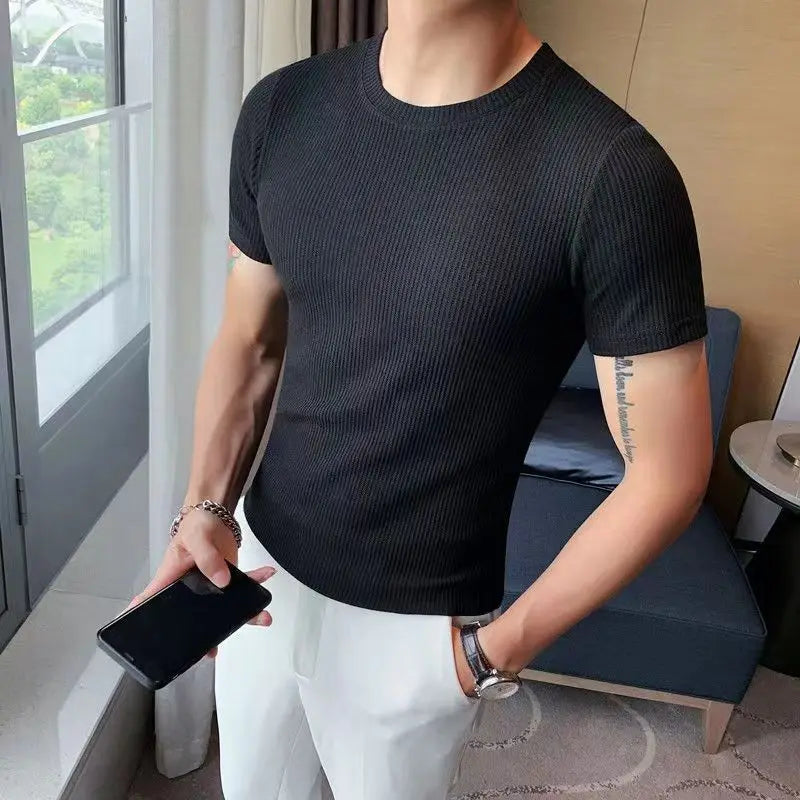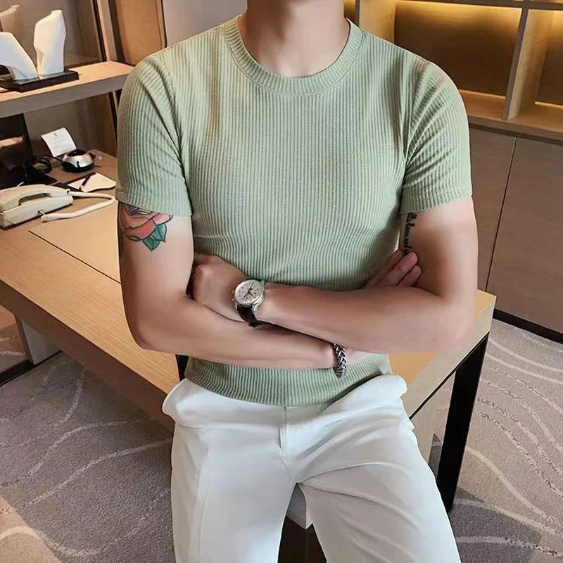 Das Meinolf – Leichtes Strick-T-Shirt vereint den lässigen Look eines T-Shirts mit der Eleganz eines feinen Stricks. Das weiche, atmungsaktive Material sorgt für ein angenehmes Tragegefühl und ist ideal für jede Jahreszeit. Ob solo getragen oder unter einem Blazer kombiniert – dieses Shirt ist ein stilvolles Essential für deine Garderobe.