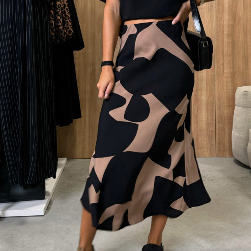 Der Sidonie – Modischer Rock mit Tierprint vereint trendiges Design mit femininer Eleganz. Das auffällige Muster sorgt für einen modernen Look, während die schmeichelhafte Passform Ihre Silhouette gekonnt in Szene setzt. Ob mit einem schlichten Top für einen lässigen Stil oder mit einer Bluse für einen eleganten Auftritt – dieser Rock bringt modische Raffinesse in jedes Outfit.