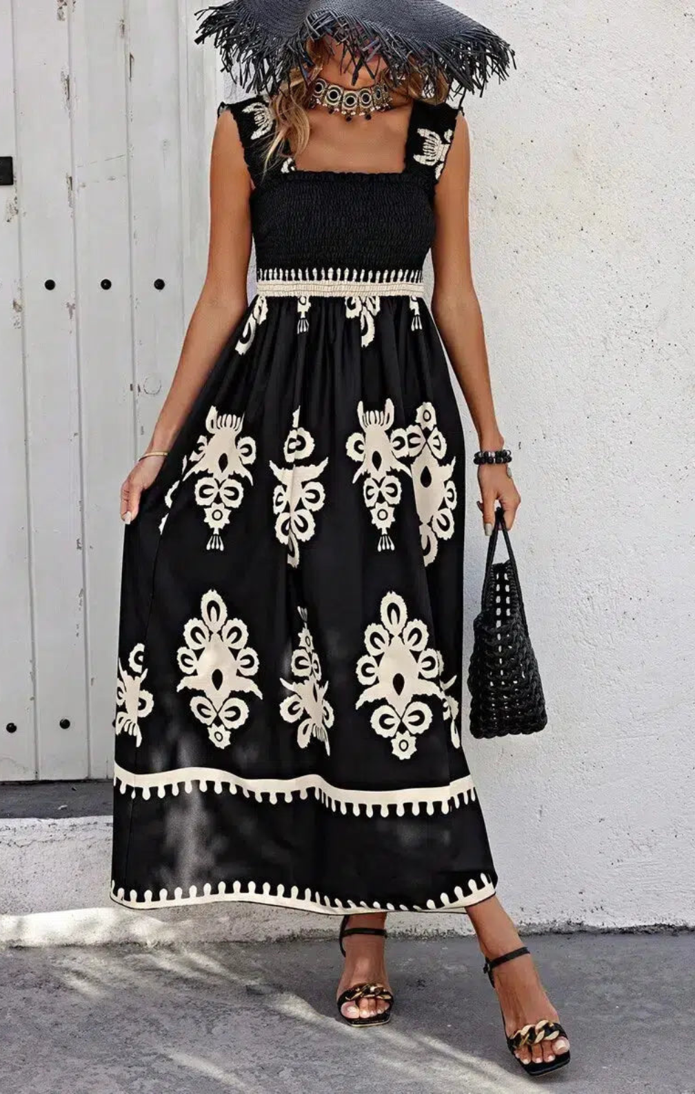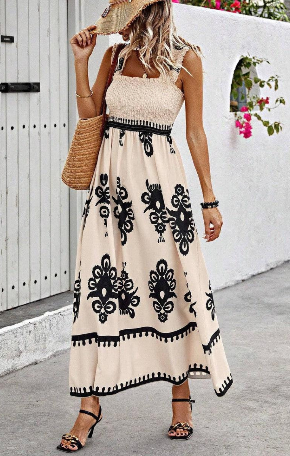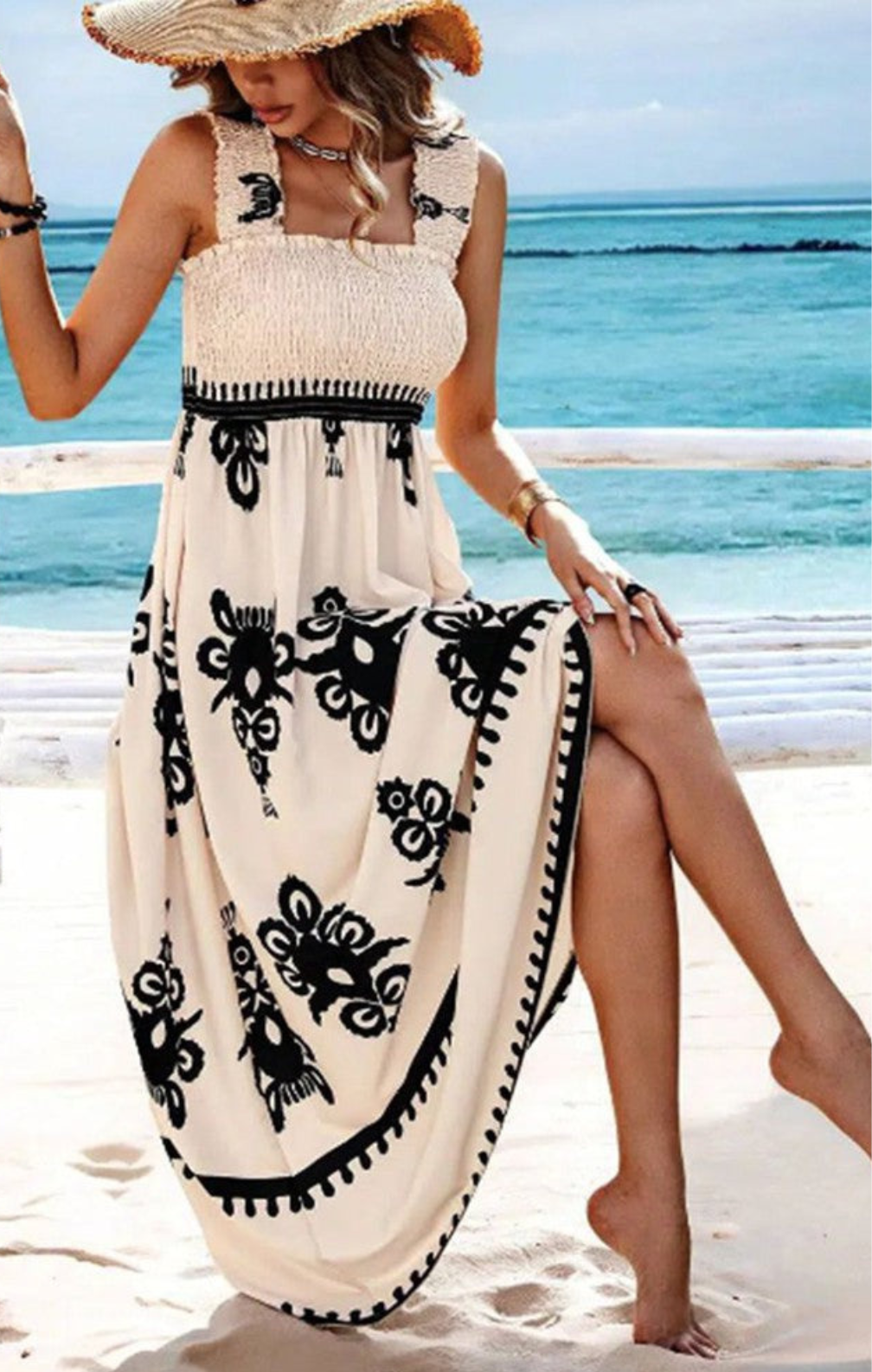 Typ: Ärmelloses Damen-Sommerkleid mit Boho-Muster