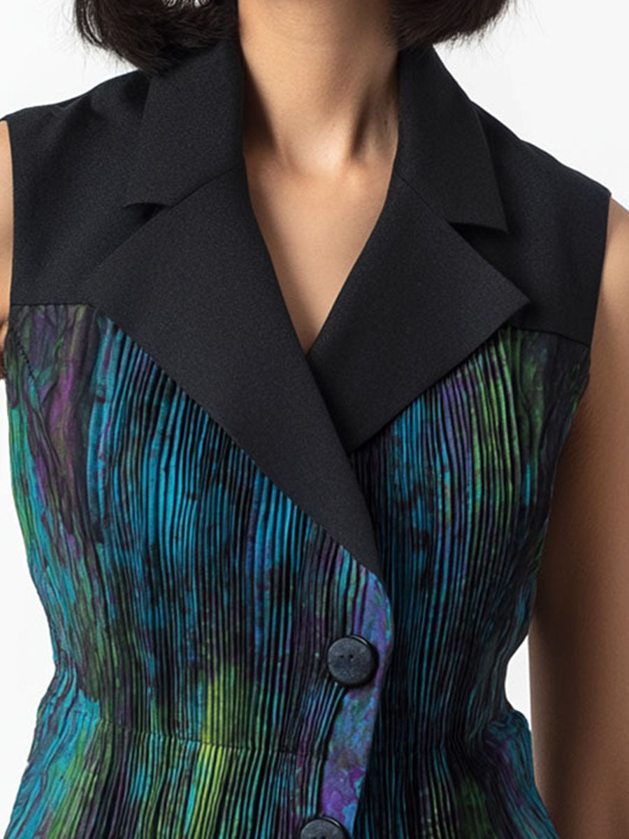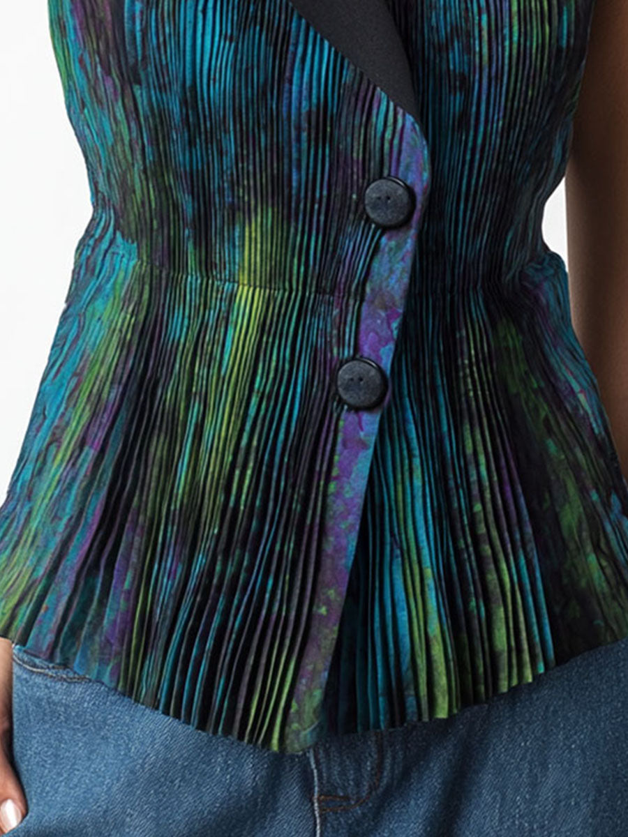 Die Statement Künstlerischer Druck Ärmellose Plissee Blazer Weste ist eine exquisite Ergänzung für jede modebewusste Garderobe. Mit einer einzigartigen Mischung aus elegantem Stil und kühner Kunstfertigkeit ist diese Blazer Weste darauf ausgelegt, ein Statement zu setzen. Das ärmellose Design ermöglicht vielseitige Layering-Möglichkeiten und die aufwendigen Plissee-Details fügen eine Schicht von Textur und Charme hinzu.
