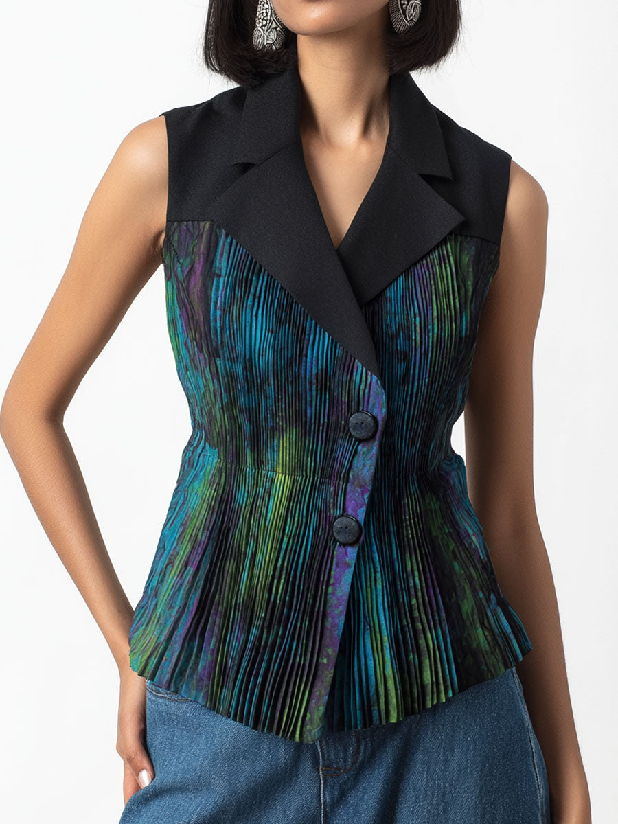 Die Statement Künstlerischer Druck Ärmellose Plissee Blazer Weste ist ein Must-Have für alle, die ihrem Outfit eine modische Note verleihen möchten. Ihr markantes Design und ihre vielseitige Natur machen sie zu einer ausgezeichneten Wahl für verschiedene Anlässe und sorgen dafür, dass Sie mit Stil und Selbstbewusstsein auffallen.