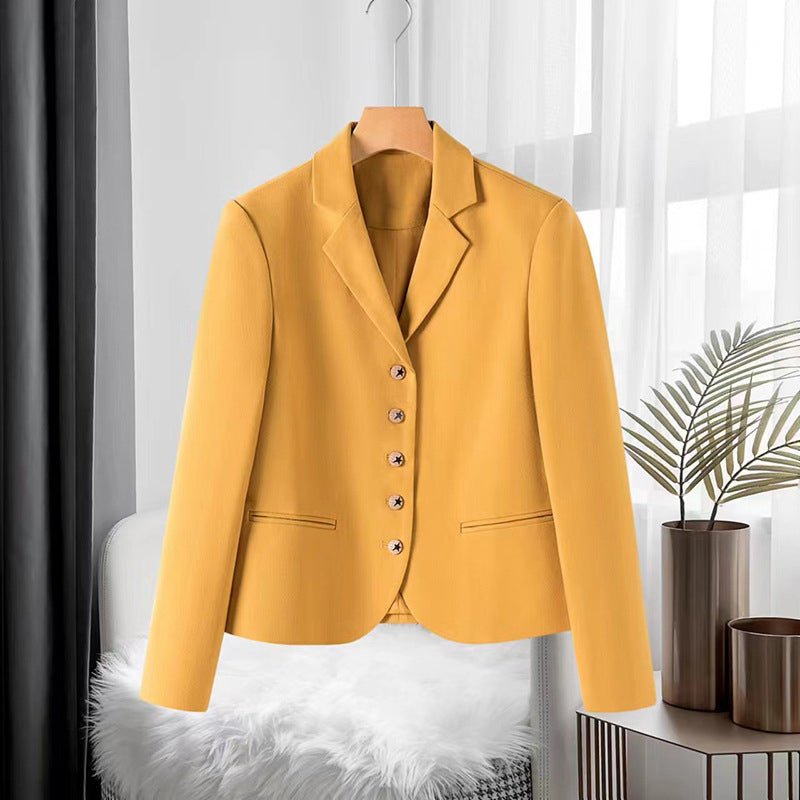 Der Ursel – Eleganter Knopf-Blazer bringt schlichte Eleganz und strukturiertes Design in perfektem Gleichgewicht zusammen. Mit seinen dekorativen Knöpfen und der klaren Linienführung ist er die ideale Wahl für stilvolle Auftritte im Büro, bei Events oder im Alltag. Ein echter Klassiker, der jedes Outfit aufwertet.