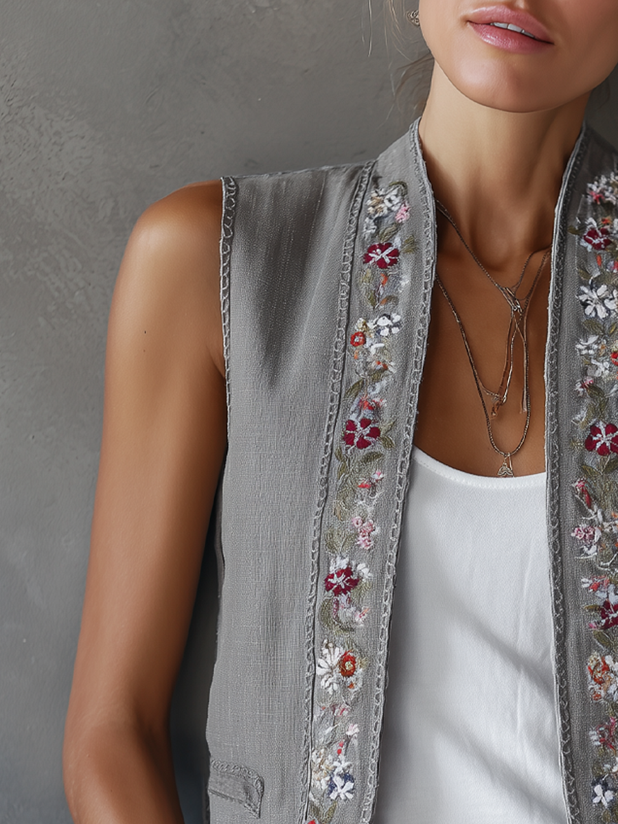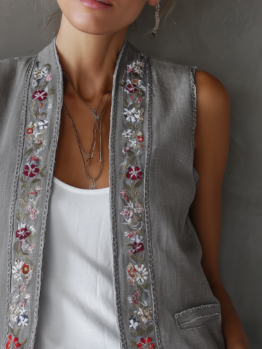 Die Vintage Stickerei Leinenweste ist eine unverzichtbare Ergänzung für jeden, der seine Garderobe mit einem Hauch von klassischer Eleganz und Vielseitigkeit bereichern möchte. Ihr exquisit gestaltetes Design, der hochwertige Stoff und die anpassbaren Stiloptionen machen sie zu einer ausgezeichneten Wahl für eine Vielzahl von Anlässen, die zeitlose Anziehungskraft und endlose Stylingmöglichkeiten bieten.